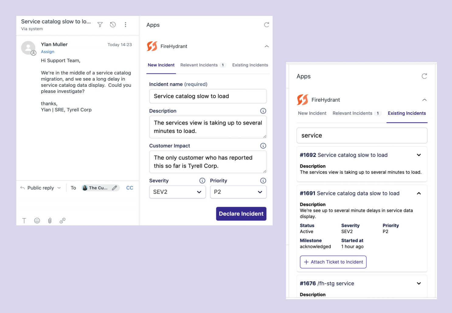 Customer support tickets are a key indicator of which customers are being actively impacted by an incident. Incident-related support tickets are an important component of impact assessment, incident prioritization, and effective stakeholder communications.