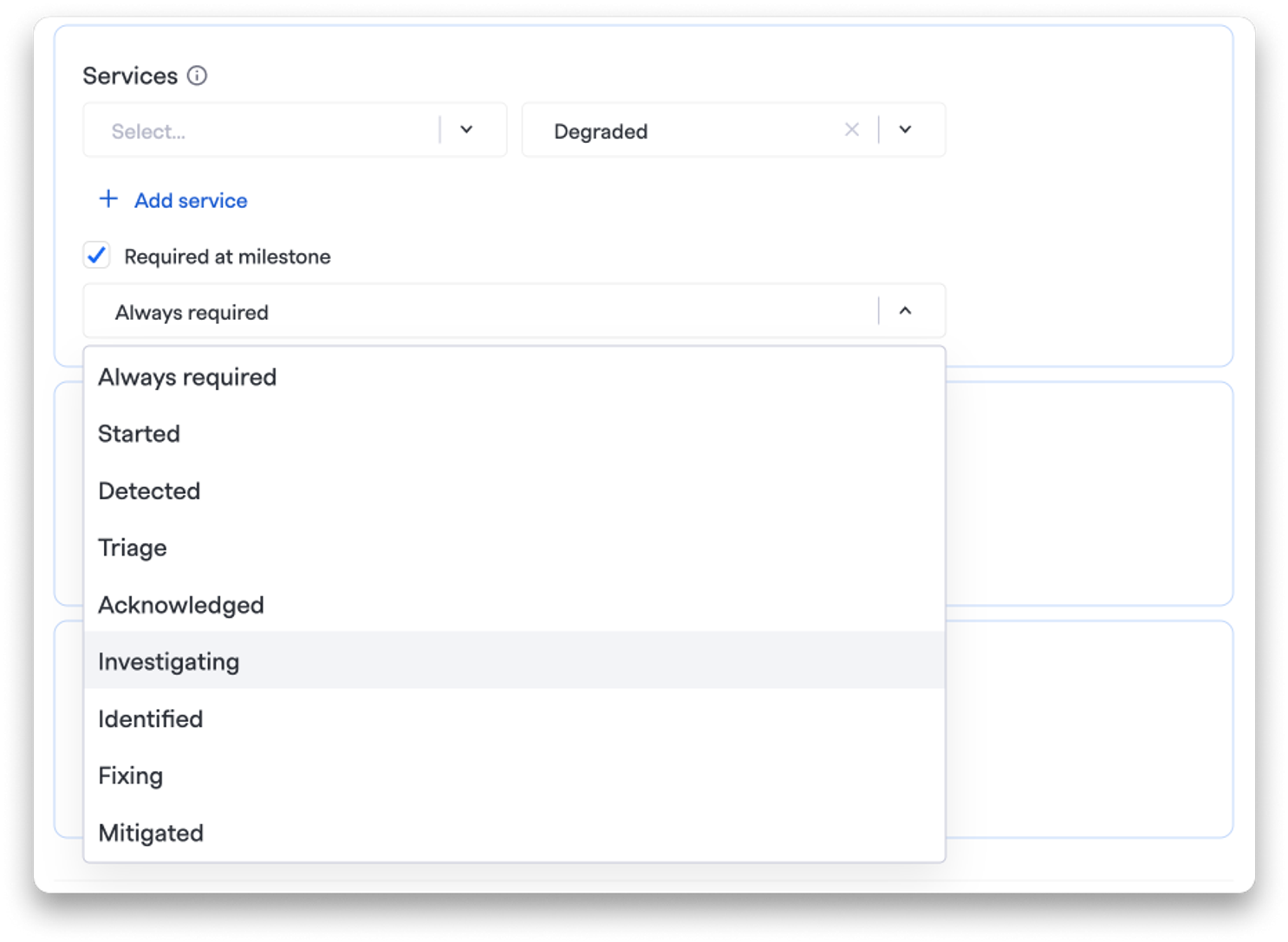Our existing Milestone-Based Required Fields help teams collect the right data at the right time by enforcing which fields must be completed before an incident moves forward.