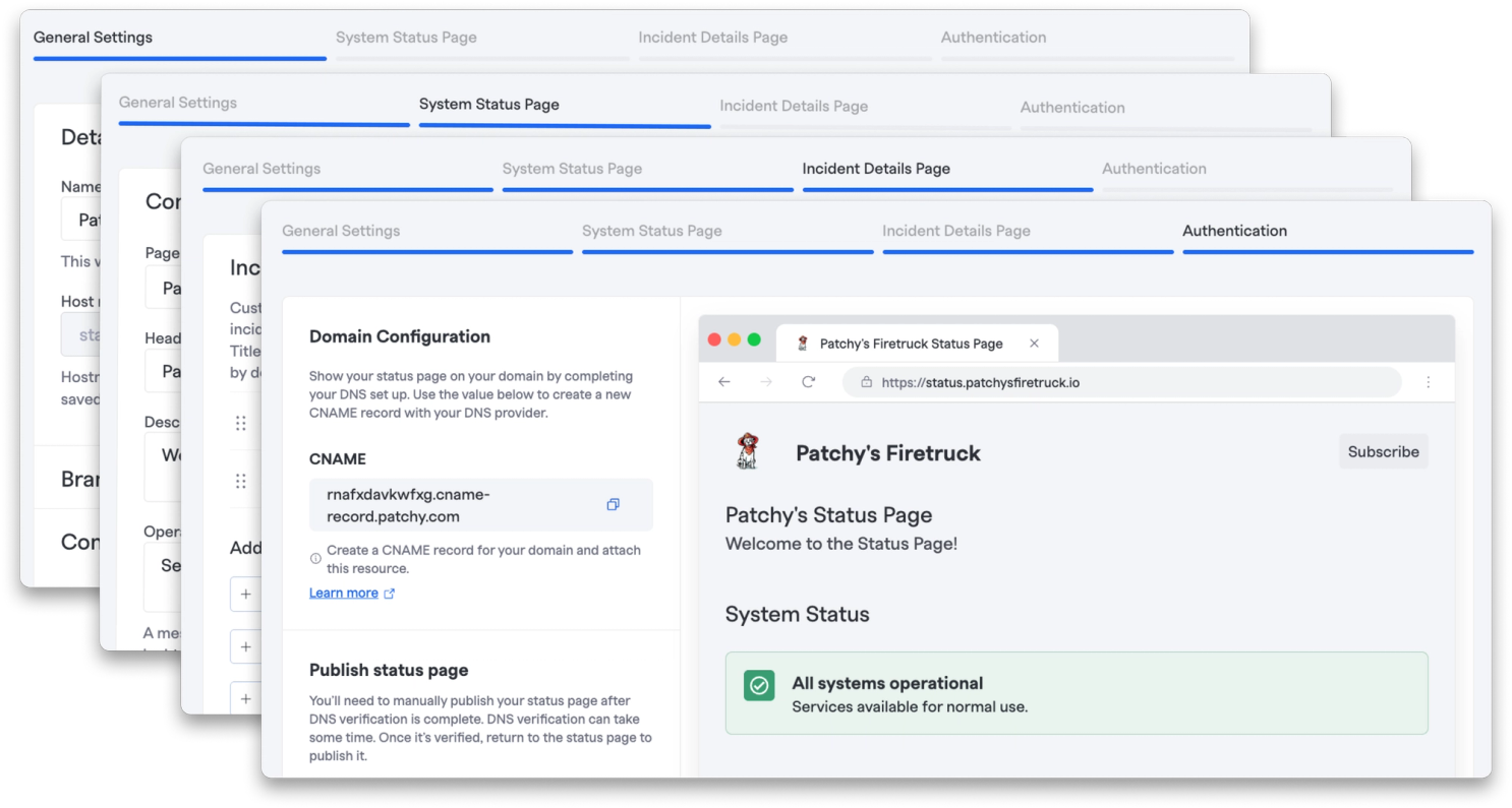 We've rebuilt the setup experience from the ground up to make it clearer and more intuitive. See exactly how your status page will look and behave before you publish it. Verify the design, and catch issues early.