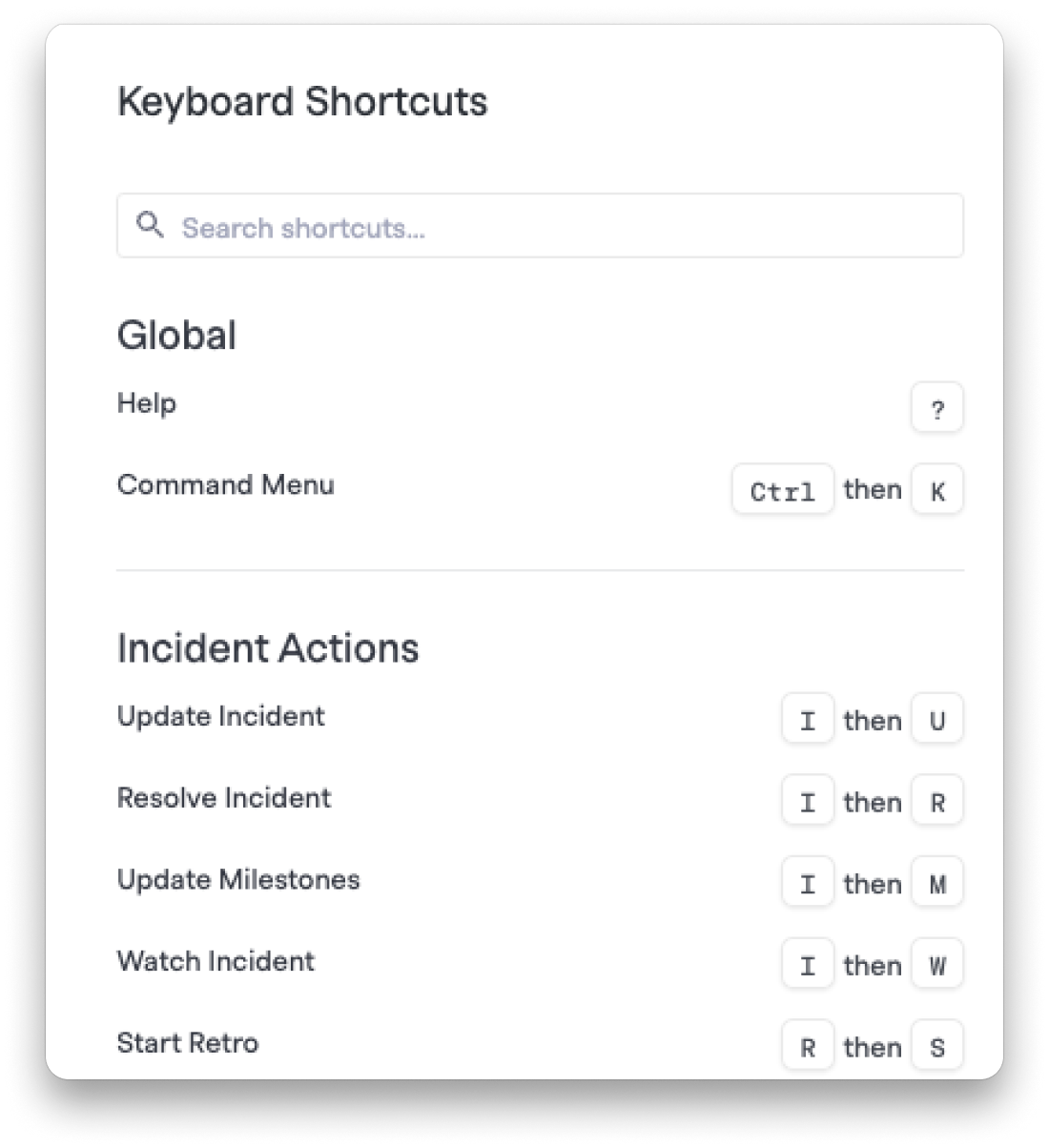 We've added keyboard shortcuts throughout the incident command center interface, allowing you to navigate and manage incidents more efficiently. Now you can: