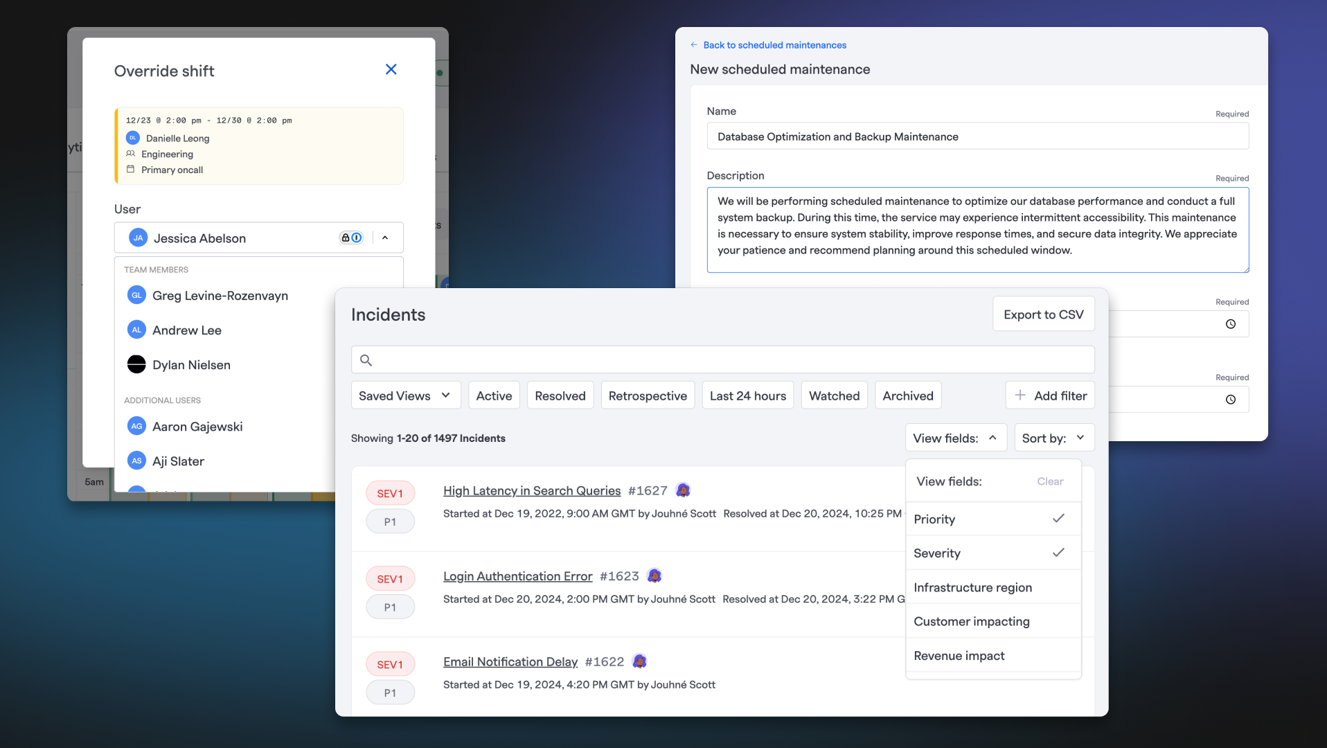 You can now customize your incident list view with toggleable priority and severity columns. This update gives you more flexibility in how you view and track your incidents, with color-coded badges making it easy to quickly assess incident status at a glance.